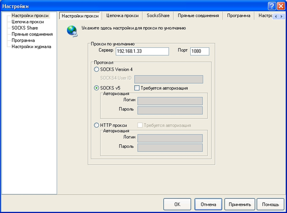 тип: SOCKSv4, SOCKSv5 или HTTP(S) прокси