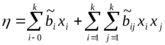Более сложные объекты требуют применения полиномиальных моделей планирования большего порядка. Так, модель второго порядка в k-факторном эксперименте будет иметь вид:
