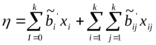Более сложные объекты требуют применения полиномиальных моделей планирования большего порядка. Так, модель второго порядка в k-факторном эксперименте будет иметь вид: