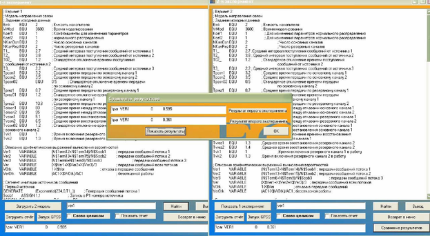 Если пользователю нужно сравнить результаты проведения двух экспериментов, а не единичное значение переменной, то продолжаем работу с приложением нажатием кнопки «Загрузить 2 модель» . Выполняем все действия описанные выше.
