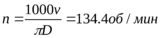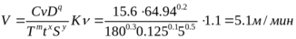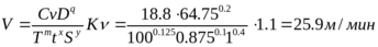 осле нахождения всех необходимых коэффициентов найдём скорость резания в м/мин.
