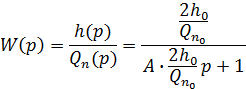 Передаточная функция объекта по каналам вход – поступающий расход воды