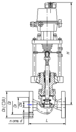 Выбираем клапан запорно-регулирующий 25ч945п односедельный фланцевый DN=20мм с характеристиками Kv=2.5. ЭИМ клапана имеет управляющий сигнал 4..20 мА.