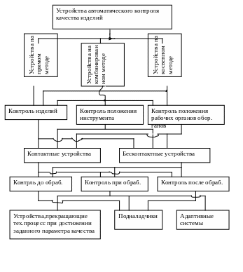 Важное значение при реализации безлюдной технологии отводится автоматизации контроля. Связано это с тем, что трудоемкость этой операции достаточно велика. В автоматических системах контролируется качество изделий, работоспособность инструмента, технологического и вспомогательного оборудования. В функции систем контроля входит: