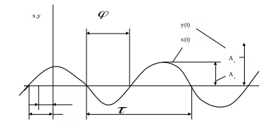 Рис.3.13. Гармонические параметры на входе x(t) и выходе y(t)