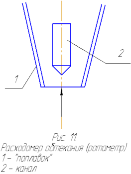Эту группу расходомеров составляют приборы, первичный преобразователь которых (поплавок, поршень, диск, пластина,…) воспринимают силовое воздействие набегающего потока. Рис. 11. Обтекаемое тело перемещается или прямолинейно, сохраняя положение своей оси симметрии, или поворачивается вокруг точки крепления. Силам, действующим со стороны потока, противодействует сила веса обтекаемого тела (при вертикальном направлении потока снизу вверх) или сила, развиваемая специальной пружиной, поддерживающей тело (в этом случае направление потока может быть произвольным).