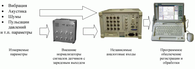 Регистратор MIC-300M (рис. 2) выпускается в РФ серийно с 2002 г.; этот прибор предназначен для измерения и анализа вибраций, акустики, пульсаций, давлений и т.п. параметров. В число функций отображения и экспресс анализа этого прибора в частности входит: