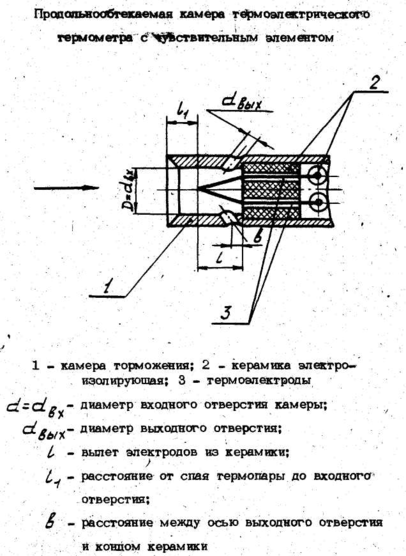 Рис. 3. Поперечнообтекаемая камера термоэлектрического термометра с чувствительным элементом