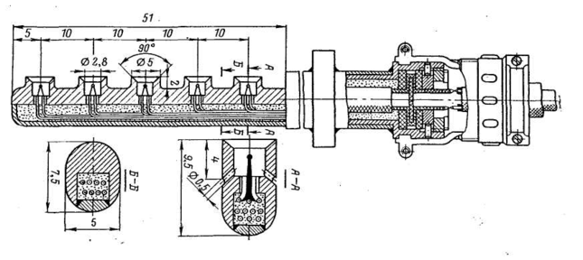 Рис. 4. Продольнообтекаемая камера термоэлектрического термометра с чувствительным элементом.