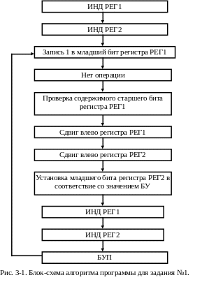 Выясните, как работает программа по данному алгоритму, и определите, какие действия производятся с содержимым регистра РЕГ1. Составьте программу по данному алгоритму и сравните полученные практические результаты с предполагаемыми.