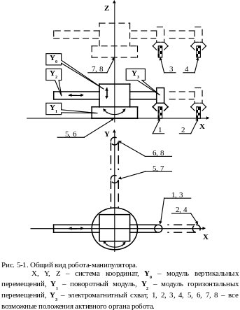 Таким образом, всего манипулятор робота может находиться в восьми показанных на рисунке 5-1 положениях, в исходном положении манипулятор находится в точке 1.