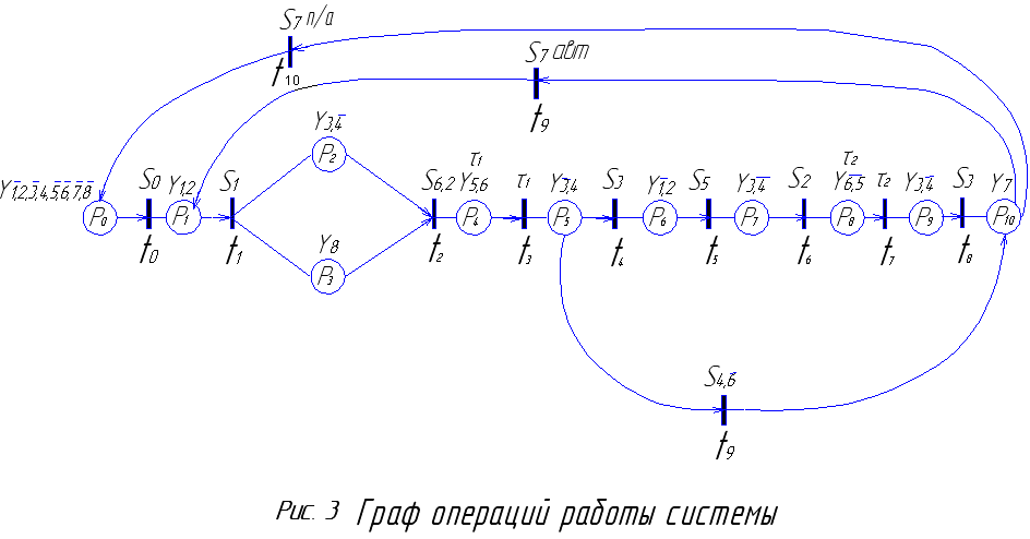 Согласно графу операций работы системы секвенциальные выражения для каждого перехода t данной системы будут иметь вид: