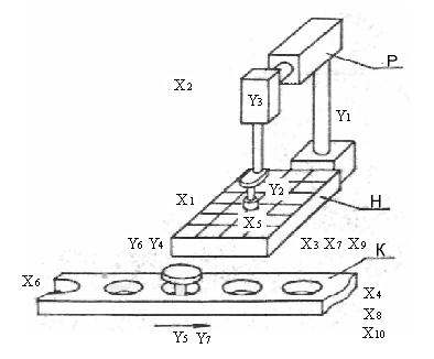 Технологическая схема сборочной РТП представлена на рис.1. Она состоит из мини-робота -Р (манипулятора с цикловым управлением), локального накопителя устанавливаемых деталей - Н (выполненного в виде кассетного 2-х координатного магазина).