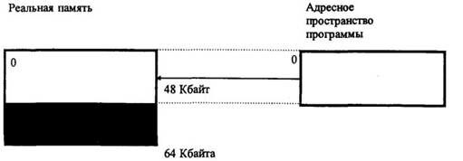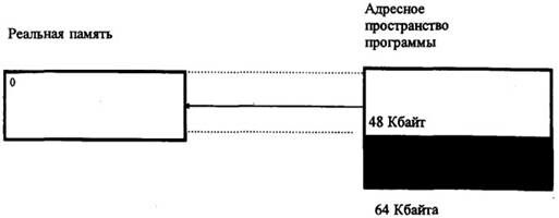 Рис.2. Загрузка программы в реальную память (объем реальной памяти больше адресного пространства программы)