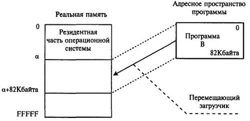В системах с динамическим перемещением программ перемещающий загрузчик размещает программу в свободной части памяти (рис.5) и допускает использование несмежных ее участков.