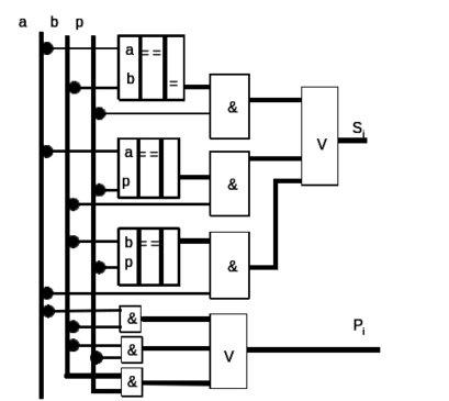 Примечание: Логические выражения для сумматора выведены в соответствии с основной таблицей истинности сложения двоичных чисел.