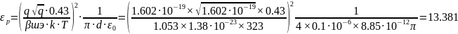 Для расчета диэлектрической проницаемости по модели токопрохождения Френкеля используем следующую формулу: