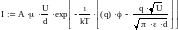 Где постоянная Ричардсона A=120; I –в амперах; d – в сантиметрах; μ – подвижность электронов, см^2/(В*С); U – приложенное напряжение, В; q – заряд электрона, Кл; T – температура, К; d – толщина диэлектрической пленки, см; qφ – энергия активации атомов примеси; ε – диэлектрическая проницаемость