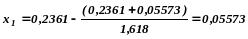в пропорции золотого сечения. При каждом шаге отрезок неопределенности уменьшается в