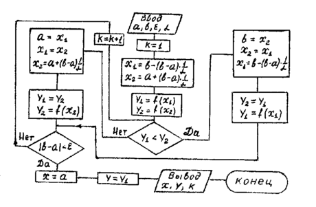 совпадут, этим завершится процедура деления отрезка неопределенности. Для получения окончательного результата необходимо вычислить