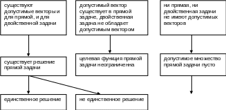 Если к двойственной задаче применить те же преобразования, какие были сделаны для прямой задачи, то вновь получаем исходную задачу линейного программирования (то есть двойственная к двойственной - есть исходная задача).
