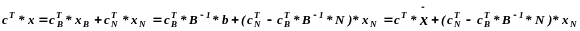 Пусть имеется начальный базис B, соответствующий начальной экстремальной точке. Целевая функция и ограничения задачи линейного программирования могут быть записаны в виде: