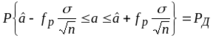 т.е. fp - квантиль порядка (1+ РД )/2 распределения N(0,1); заметим, что зависит от а , но (3) верно при любом значении а. Подставим в (3) выражение для из (2) и разрешим неравенство под знаком вероятности в (3) относительно а ; получим соотношение