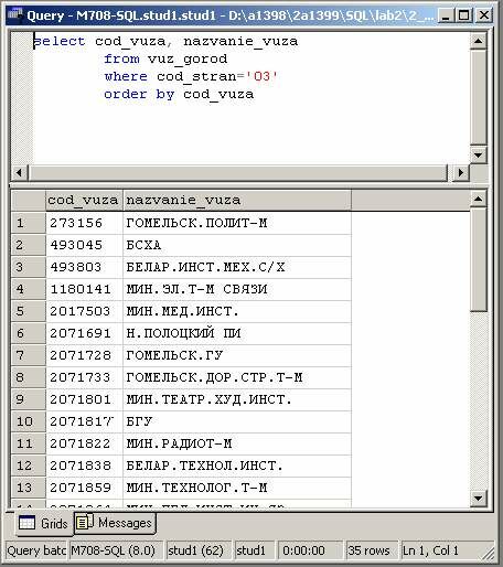 select cod_vuza, nazvanie_vuza from vuz_gorod where cod_stran='03' order by cod_vuza [F5]