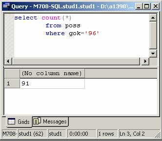1) выполнить запрос с условием выборки по году окончания (значение '96'), используя в списке выборки агрегатную функцию count(*), предназначенную для подсчета общего количества записей по запросу;