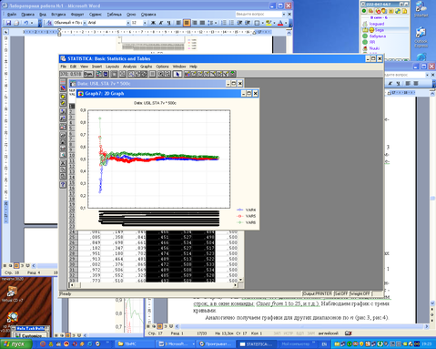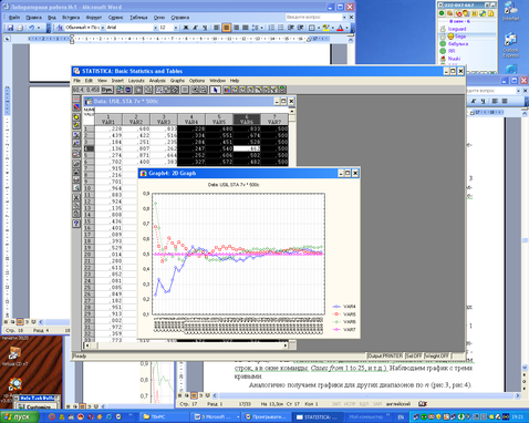 Анализируя результирующие графики, видим, что кривые среднеарифметических иногда испытывают скачки, которые отбрасывают их значения далеко от 0 – центра распределения.