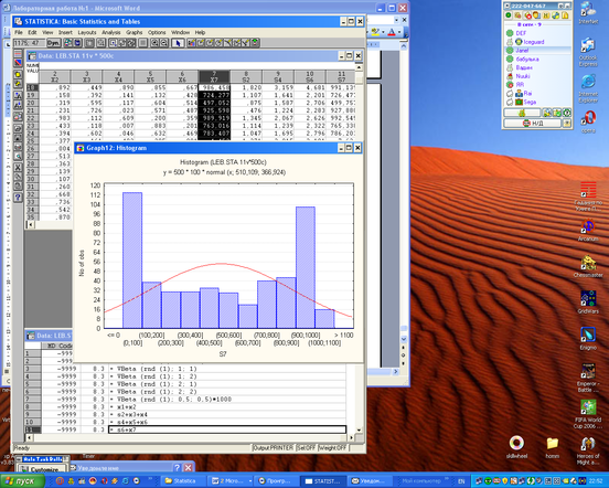 Задание 2. Проверить это (получить гистограмму), добавив в (12) 7-е слагаемое, имеющее beta-распределение с параметрами a=b=0.5 и умноженное на 1000.