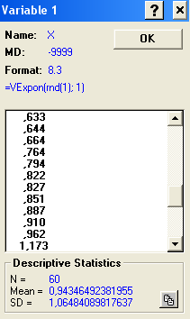 Приведем с помощью пакетов примеры. Исходные данные находятся в табл.1 ( E(a) в таблице означает показательное (экспоненциальное) распределение с математическим ожиданием, равным a).