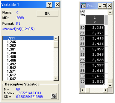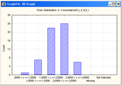 Сгенерируем выборку(=Vnormal(rnd(1); 2; 0.5 ) ):