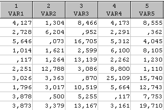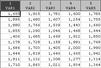 Первые пять выборок(Vnormal(rnd(0.5); 2; 0.5 )):