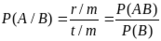 Действительно, в данном испытании произошло одно из t событий, входящих в B. Все элементарные события равновероятны, следовательно, для данного испытания вероятность наступления произвольного элементарного события, входящего в B равна 1/t. Тогда по классическому определению вероятности, в данном испытании событие A произойдет с вероятностью r/t.