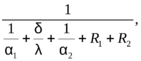 где 1, 2 – коэффициенты теплопередачи теплоносителей; коэффициент теплопроводности материала стенки; – толщина стенки; R1, R2 – термические сопротивления загрязнений поверхности теплообмена.