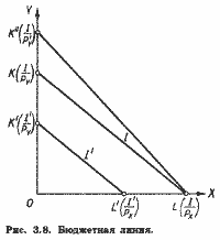 Бюджетное ограничение I = PXX + PYY - доход потребителя равен сумме его расходов на покупку товаров X и У.