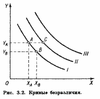 чем выше, тем предпочтительнее. потребитель стремится приобрести товарный набор на наиболее удаленной от начала координат кривой безразличия