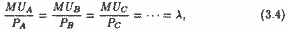 (МUA/PA = 40 ютилов/2 рубля) > (20 ютилов/4 рубля) = МUB/PB