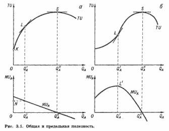 рис б): MU последующих единиц блага может сначала , достигает максимума и . Это для небольших порций делимых благ. (Вторая затяжка сигареты). Т.к. покупаем на рынке не отдельные акты потребления (затяжки), а определенные блага (сигареты), то считаем, что 1ый закон Госсена для товаров на рынке верен.