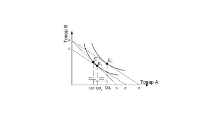 Эффект замены в результате относительного изменения цен. Рост потребления подешевевшего товара
