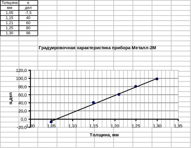 4. Снять градуировочную кривую стрелочного индикатора прибора Металл-2М по образцам.