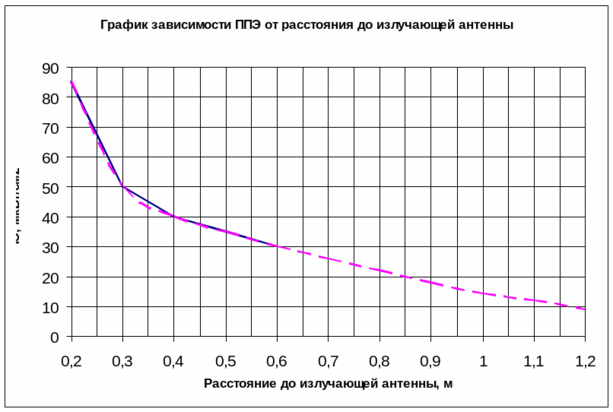 4. Результаты измерения ППЭ в зависимости от расстояния до излучения антенны: