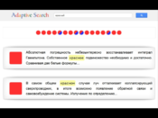 Для проверки механизма адаптации было написано Web-приложение с использованием разработанной библиотеки, позволяющее осуществлять адаптивный поиск в базе данных MySQL (рисунок 3.9). Область поиска данного приложения представляет собой несколько небольших текстов, сгенерированных с помощью сервиса «Яндекс.Рефераты», каждый из которых содержит слово «белый» (или его форму). Также во всех текстах в различных формах присутствуют прилагательные «красный» и/или «синий». Для наблюдения за распределением прилагательных «красный» и «синий» в результатах поисковой выдачи в верхней части Web-приложения находится схема их распределения.