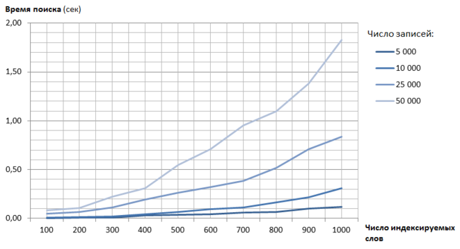 Рис. 3.8. Зависимость времени выполнения поискового запроса