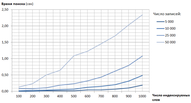 Рис. 3.2. Зависимость времени выполнения поискового запроса