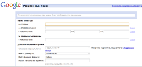 Наиболее популярным способом работы с поисковиком является подача запроса, состоящего из одного слова. Между тем, поисковые системы предоставляют возможность расширенного поиска, позволяющего задавать более точные настройки параметров запроса. Например, можно определить, где должно находиться искомое слово (в документах, в их названиях, в заголовках документов и т. д.), уточнить язык документов, по которым осуществляется поиск, и даже указать системе, нужно ли искать однокоренные слова или поиск следует ограничить лишь словом в том виде, как оно написано в строке запроса. В дополнение к этому, особая опция позволяет исключать из результатов поиска документы, содержащие определенные слова.