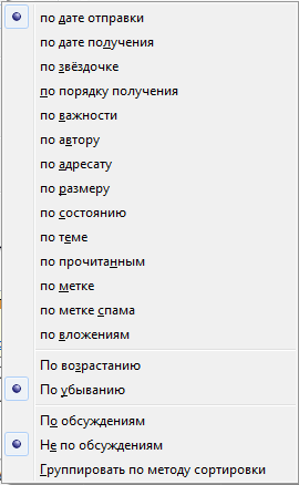 Настроить фильтрацию и сортировку писем в почтовом клиенте