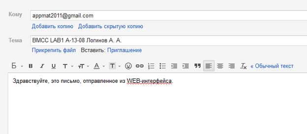 Отправить письмо с WEB-интерфейса