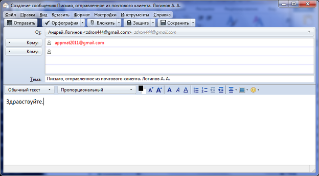 Отправление письма с помощью Mozilla Thinderbird: